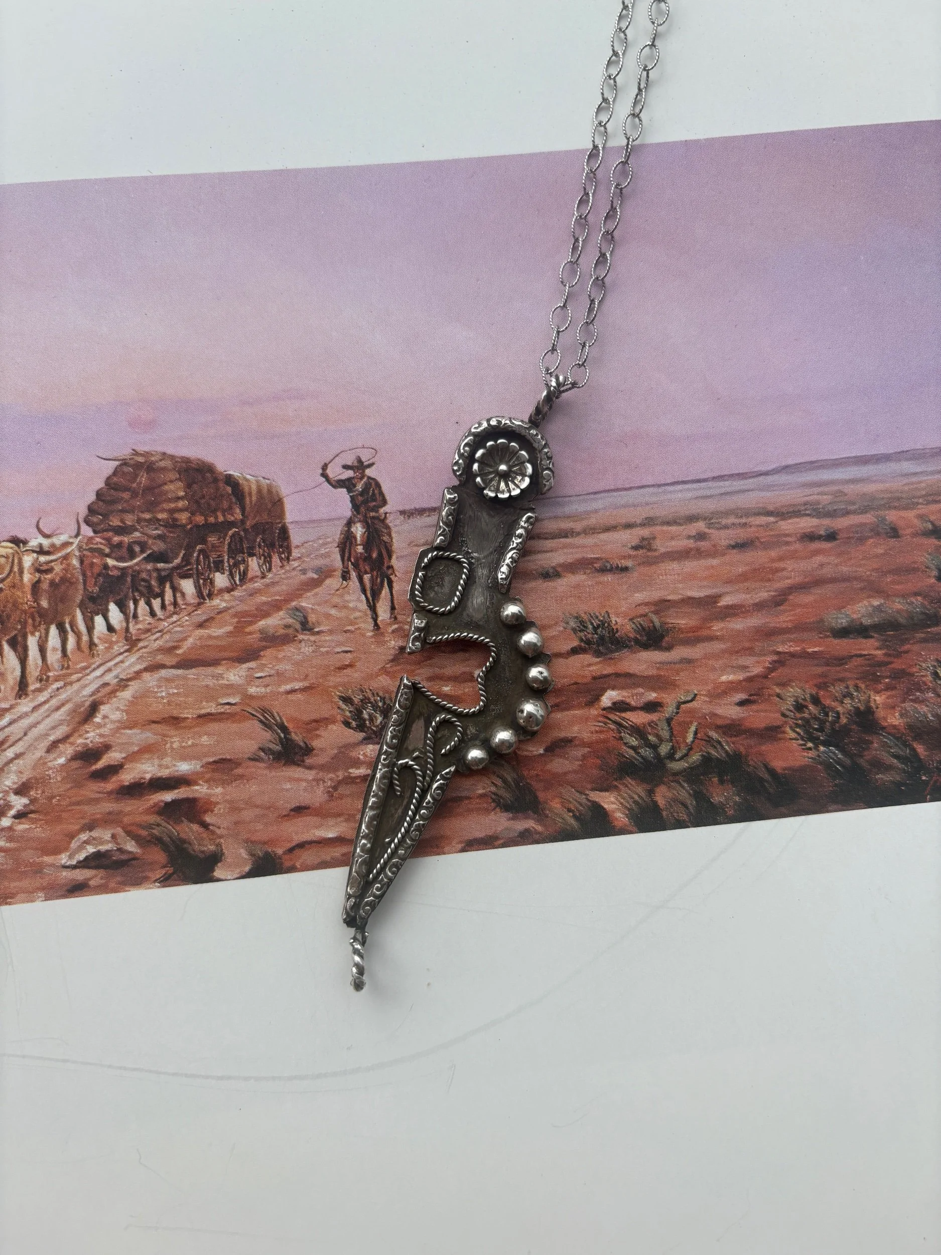 Psalm 27:14 Tip Your Hat Pendant $185.00 Sold out Shank Bit Necklace $250.00 Sold out Cloverleaf Rowel Pendant $175.00 Sold out Six Rowel Necklace PRE-ORDER $185.00 Sold out Iron sharpens iron Tip your Hat Pendant PRE-ORDER $185.00 Sold out Snaffle Bit Necklace $175.00 Sold out Horse Bit Necklace #2 PRE-ORDER $155.00 Sold out Horse bit necklace #1 PRE- ORDER $155.00 Sold out Royston Ribbon Feathered Indians Pendant $250.00 Sold out Larimar Feathered Indians Pendant $185.00 Sold out Buffalo Bloom Ring ✙︎ $155.00 Sold out Saddle Ridge Ring $145.00 Sold out ✙︎ Buffalo Bloom Pendant ✙︎ $275.00 Sold out