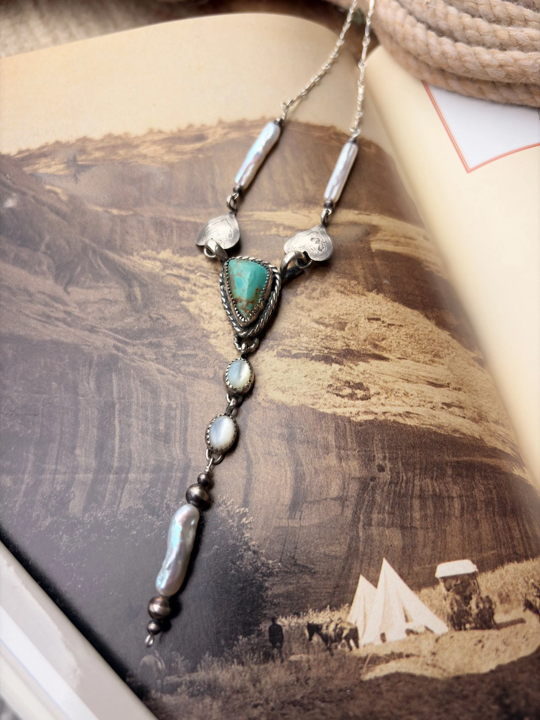 among the willows silver co. › The Cowpoke Lariat Image 1 of 3 Image 2 of 3 Image 3 of 3 The Cowpoke Lariat $325.00 sold out 18” with fresh water pearls Sold Out Added! 18” with fresh water pearls